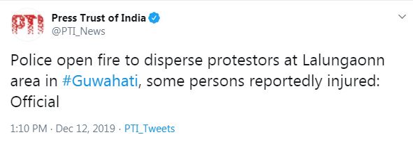 गुवाहाटी में लालुंगौना इलाके में प्रदर्शनकारियों को खदेड़ने के लिए पुलिस ने गोलियां चलाई, अधिकारियों के अनुसार इस दौरान कुछ लोग घायल हो गए हैं।