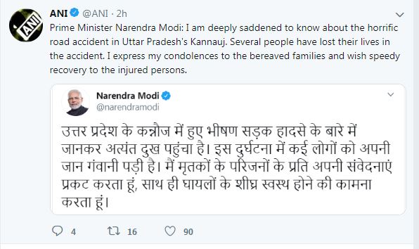 कन्नौज सड़क हादसे पर PM मोदी समेत अन्य लोगों ने जताया दुख, 20 लोगों की मौत की आशंका