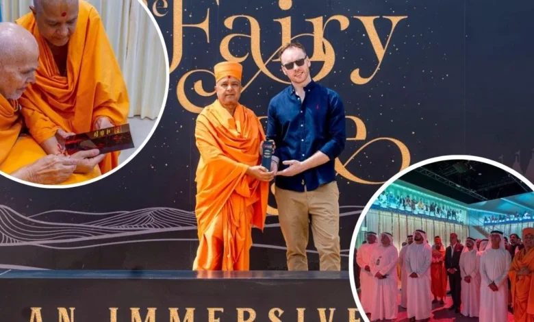 यह शारजाह में प्रमुख स्वामी महाराज की प्रार्थना, शेख मोहम्मद बिन जायद की उदारता और महंत स्वामी महाराज और प्रधानमंत्री नरेंद्र मोदी द्वारा भव्य उद्घाटन जैसे महत्वपूर्ण क्षणों को जीवंत करता है. व्यूएवी के तकनीकी निदेशक एड्रियन गोल्डर के अनुसार, ‘द फेयरी टेल शो की रचनात्मकता, अवधारणा और वैश्विक संदेश ही इसे सबसे खास बनाता है. स्वामी ब्रह्मविहारीदास द्वारा लिखित इसकी पटकथा प्रभावशाली और परिवर्तनकारी है.
