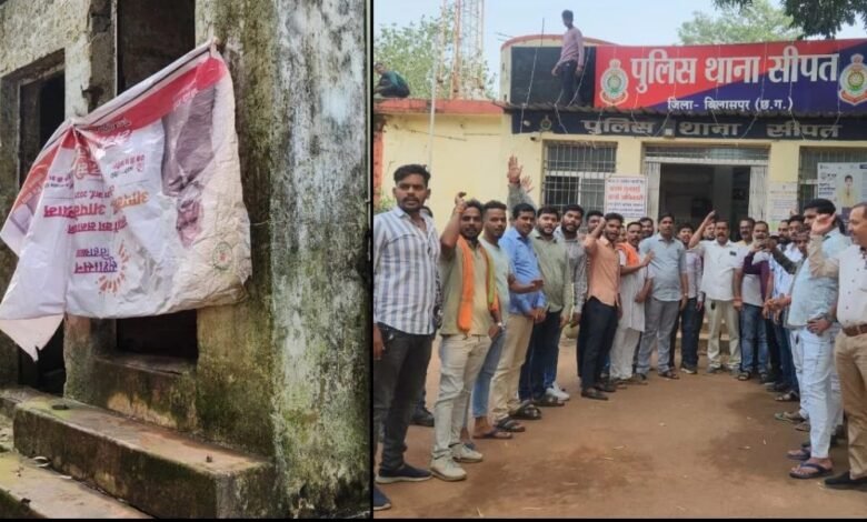 बिलासपुर। दिवाली के ठीक एक दिन पहले सीपत थाना विवादों में घिर गया। मामला सार्वजनिक शौचालय में प्रधानमंत्री नरेंद्र मोदी और मुख्यमंत्री विष्णुदेव साय का पोस्टर लगाने से जुड़ा है। बताया जा रहा है कि सुशासन पखवाड़ा के तहत लगाए गए इस पोस्टर को थाने परिसर स्थित शौचालय में दरवाजा टूटने के कारण अस्थायी रूप से दरवाजे के रूप में लगा दिया गया था। जैसे ही यह बात भाजपा कार्यकर्ताओं तक पहुंची, थाने में हड़कंप मच गया और मामला तूल पकड़ लिया।