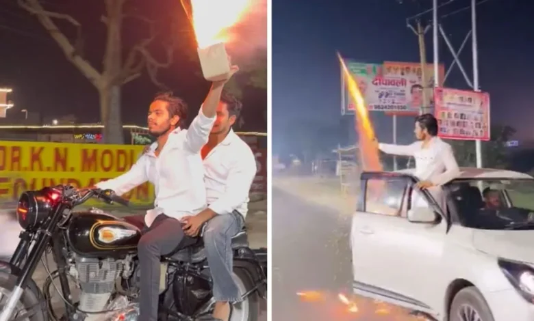 मौत से खिलवाड़: दिल्ली-मेरठ रोड पर चलती गाड़ियों से पटाखे फोड़कर स्टंट, पुलिस ने लिया संज्ञान