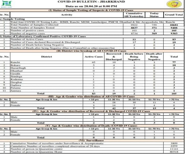 झारखंड में आज फिर मिले 02 कोरोना मरीज, अबतक 107; जानें ताजा हाल