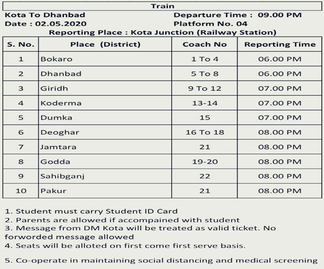 आज कोटा, राजस्थान से हमारे राज्य के छात्रों को लेकर 2 स्पेशल ट्रेन झारखण्ड के लिए रवाना होगी।