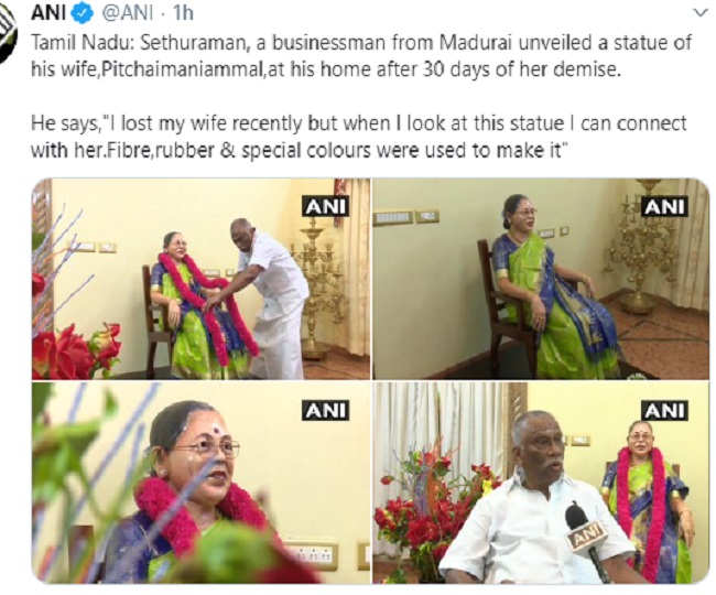 सेथुरमन नाम के इस शख्स ने न्यूज एजेंसी एएनआइ को बताया कि उन्होंने हाल ही में अपनी पत्नी को खोया है, लेकिन जब भी वह इस स्टैच्यू को देखते हैं तो वह अपनी पत्नी से जुड़ा हुआ महसूस करते हैं। साथ ही उन्होंने कहा कि इसे बनाने के लिए इसे बनाने के लिए रबर, विशेष रंगों का उपयोग किया गया है।
