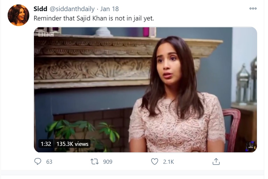 वीडियो में करिश्मा ने बताया, ‘रिहर्सल चल रही थी और वो अपनी स्क्रिप्ट पढ़ रही थी। तभी साजिद ने उससे उसका टॉप और ब्रा उतारने को कहा। उसने समझ नहीं आया कि वो क्या करे। उसने कहा कि अभी तो फिल्म शुरू भी नहीं हुई है और ये सब हो रहा है। वो घर आकर बहुत रोई’। आगे करिश्मा ने बताया, ‘जिया ने मुझसे कहा कि उसने कॉन्ट्रेक्ट साइन कर लिया है। अगर वो फिल्म छोड़ेगी तो ये उसपर केस कर देंगे और उसका नाम खराब कर देंगे। और वो फिल्म का हिस्सा रही तो उसे सेक्शुअली हैरेस्ड किया जाएगा। ये बहुत बुरी स्थिति थी, इसलिए उसे फिल्म करनी पड़ी’।